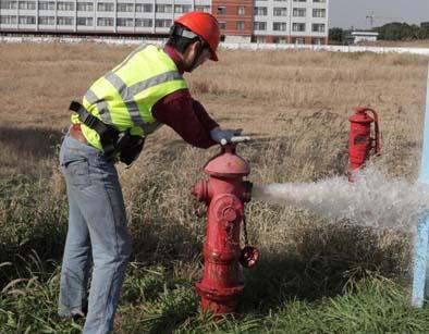 1、由于地下消防栓上蓋著厚重的井蓋板,打開(kāi)時(shí)一般由兩個(gè)人用鐵制的專用工具勾起井蓋板,露出地下消防栓后再用加長(zhǎng)的開(kāi)關(guān)扳手深入到